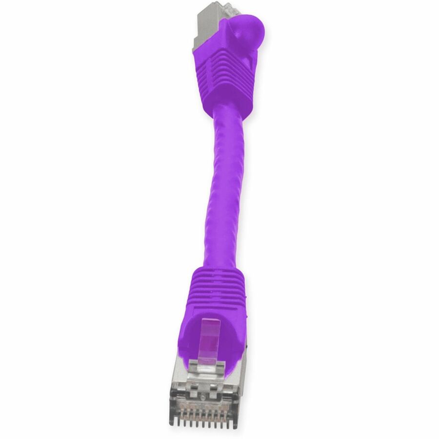 This is a 0.15m (0.5ft) RJ-45 (male) to RJ-45 (male) violet Cat6 STP PVC-rated patch straight cable that is used for high speed data transfer. Our patch cables are 100% compliant for all of your networking needs and are guaranteed by federal law to not affect or void OEM warranties.