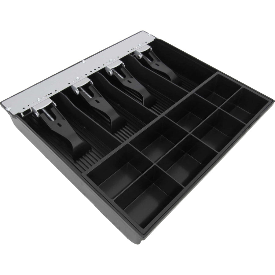 Adjustable bill widths, Removable coin tray, 4 Bill x 8 Coin, Euro ready, fits Vasario 1416 size and Series 4000 1317 size cash drawers. Till measures 12.7 x 11.7 x 2.2 inch / 321 x 297 x 56 mm. Currencies that fit this till: Taiwan New Dollar, Hungarian Forint, Latvian Lats, Lithuanian Litas, Australian Dollar, Thai Baht, Turkish Lira, Swiss Francs, Jamaican Dollar, New Zealand Dollar, Kenyan Shilling, Bahraini Dinar, Bolivian Bolivianos, Chile Peso, Chinese Renminbi, Costa Rican Colon, Danish Krone, Israeli New Shekel, Canadian Dollar, Jordanian Dinar, Russian Ruble