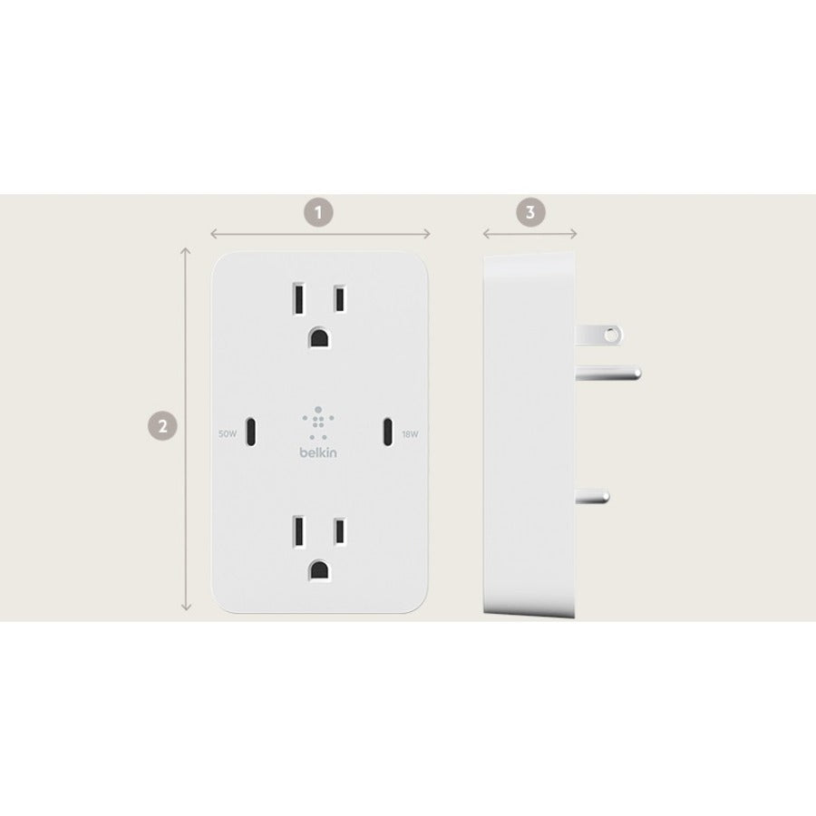 Dual AC wall sockets allow kitchen appliances, lamps, and home theater equipment to be plugged in while simultaneously charging two USB-C devices