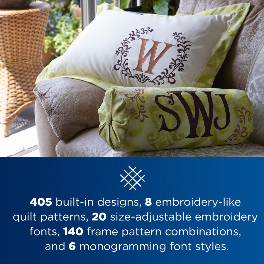 - 405 Built-in embroidery designs and 20 fonts