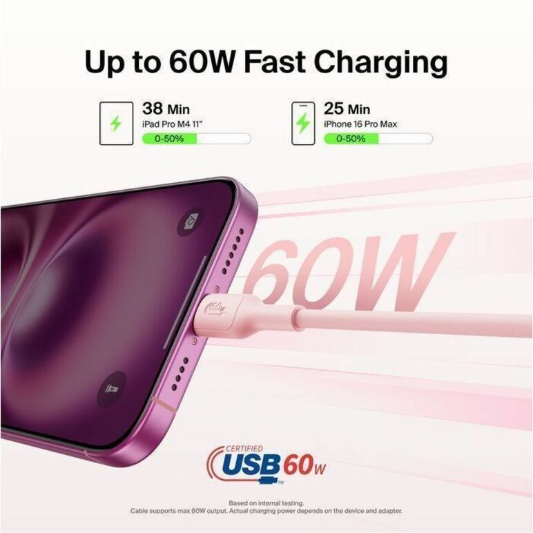 Sustainability meets durability in the new BoostCharge Pro USB-C to USB-C Cable 60W. Fast charge your iPhone 16 from 0-50% in 25 minutes.Built to last, this PCR cable survives 300,000+ bends and 20,000+ plug ins.