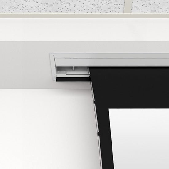 The Tensioned Advantage® ceiling recessed electric screen series is designed with ceiling trim in place, to conceal the rough opening eliminating the need to complete additional trim work once the screen is installed. Its two-stage installation option affords the screen case to be installed during the rough-in construction stage, and the screen surface assembly during the finishing stage. Sliding installation brackets allow mounting flexibility for easy attachment of the screen housing to the structure above the drop ceiling.