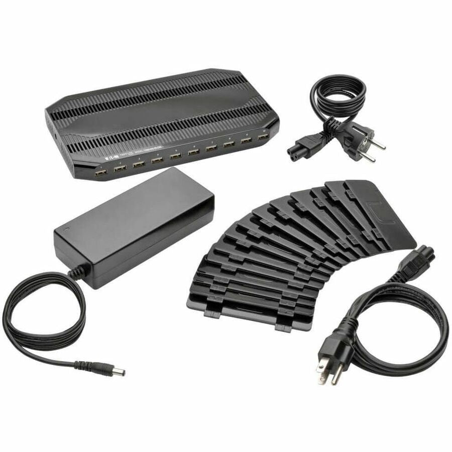 Eaton Tripp Lite Series 10-Port USB Charging Station with Adjustable Storage, 12V 8A (96W) USB Charger Output, Schuko Power Cord