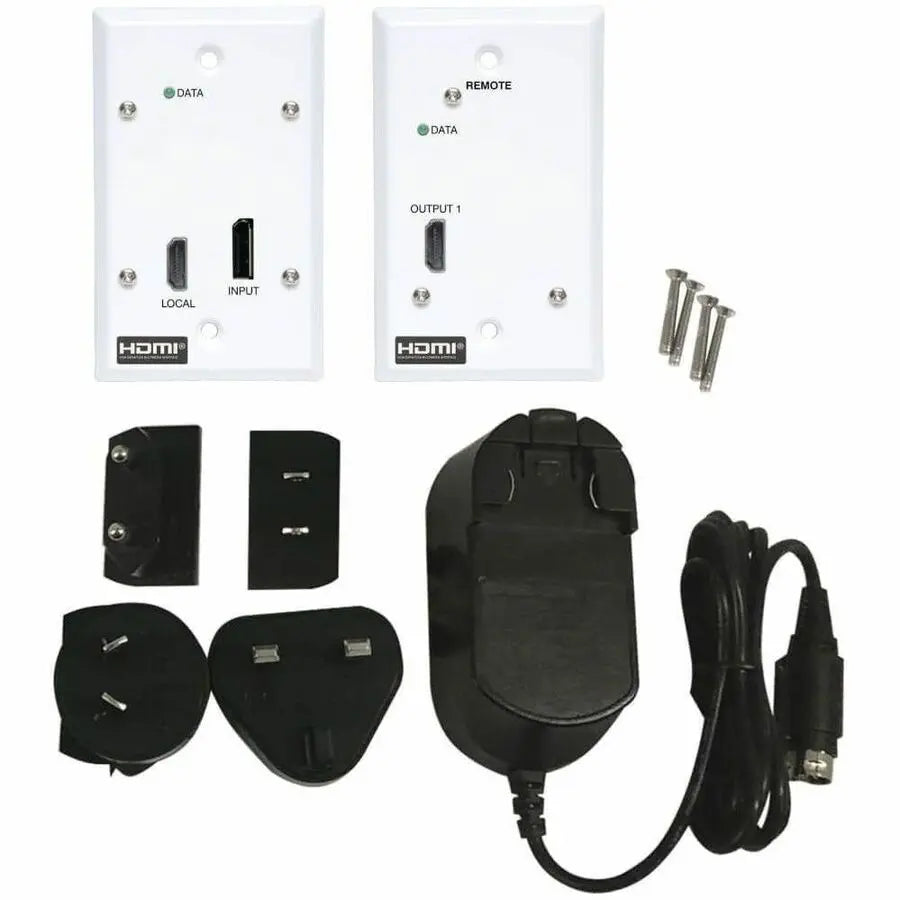 This complete wall-plate-style transmitter and receiver system is recommended for video presentations in conference rooms, schools, trade shows, meeting facilities, houses of worship, retail settings, hotels and other digital signage applications where the source and display are farther apart than conventional A/V cables allow. Both the transmitter and receiver have a single-gang metal wall plate design with a metal back cover and blend perfectly into the room décor.