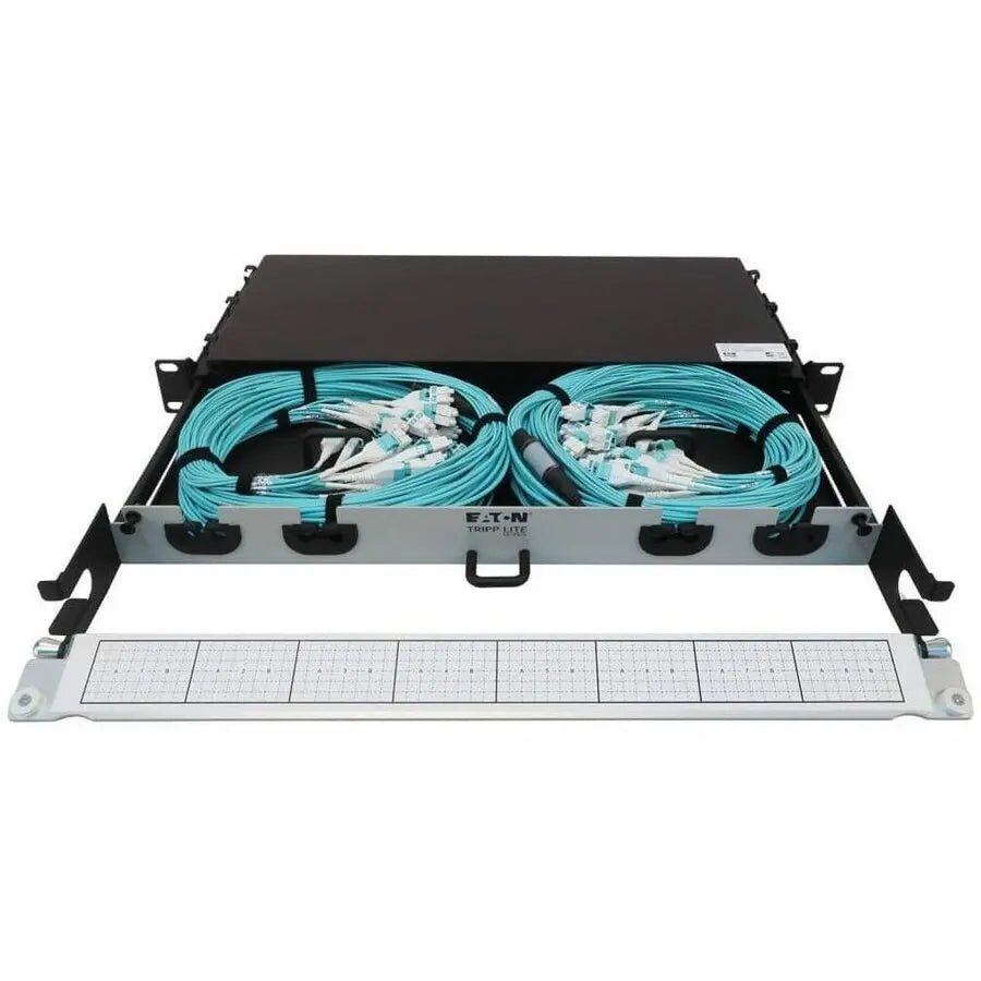 Eaton Tripp Lite Series Preloaded Fiber Panel, 1U – 2x (12x LC/LC Duplex M/M) 24F Trunk Cables, OM4 Multimode, 20 m (65.6 ft.)