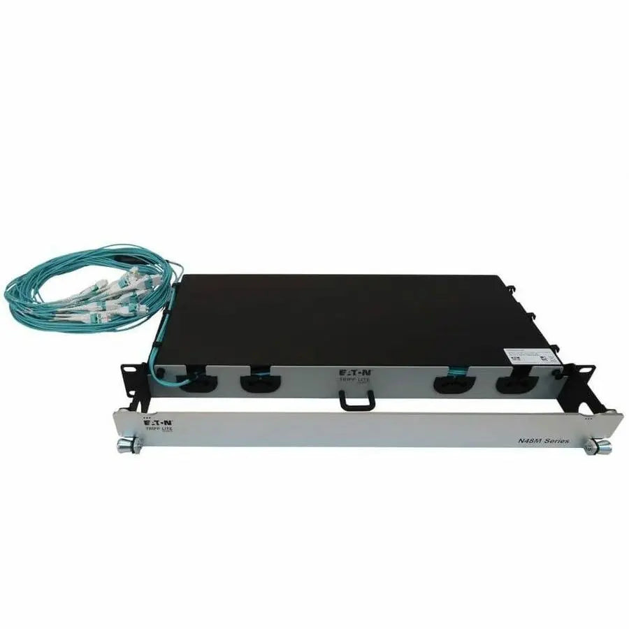 All necessary cabling is included with this preloaded fiber panel, coiled inside and ready for immediate use. The aluminum 1U chassis features two 24-fiber LC Duplex multimode trunk cables, both 20 meters (65.6 feet) in length to make management easy. The panel opens to provide easy access to stored cables. Use only as much cabling as you need. The remainder stores inside the chassis to eliminate cable clutter, allow better airflow through the rack and make equipment maintenance and replacement easier. The cables and panels have labels to help with organization. You also avoid the expense and effort of custom cabling. The flexibility in cable length lets you reuse the cables if equipment is moved. The N48M2L24L-20 mounts in just 1U of space in an EIA-standard 19-inch rack.