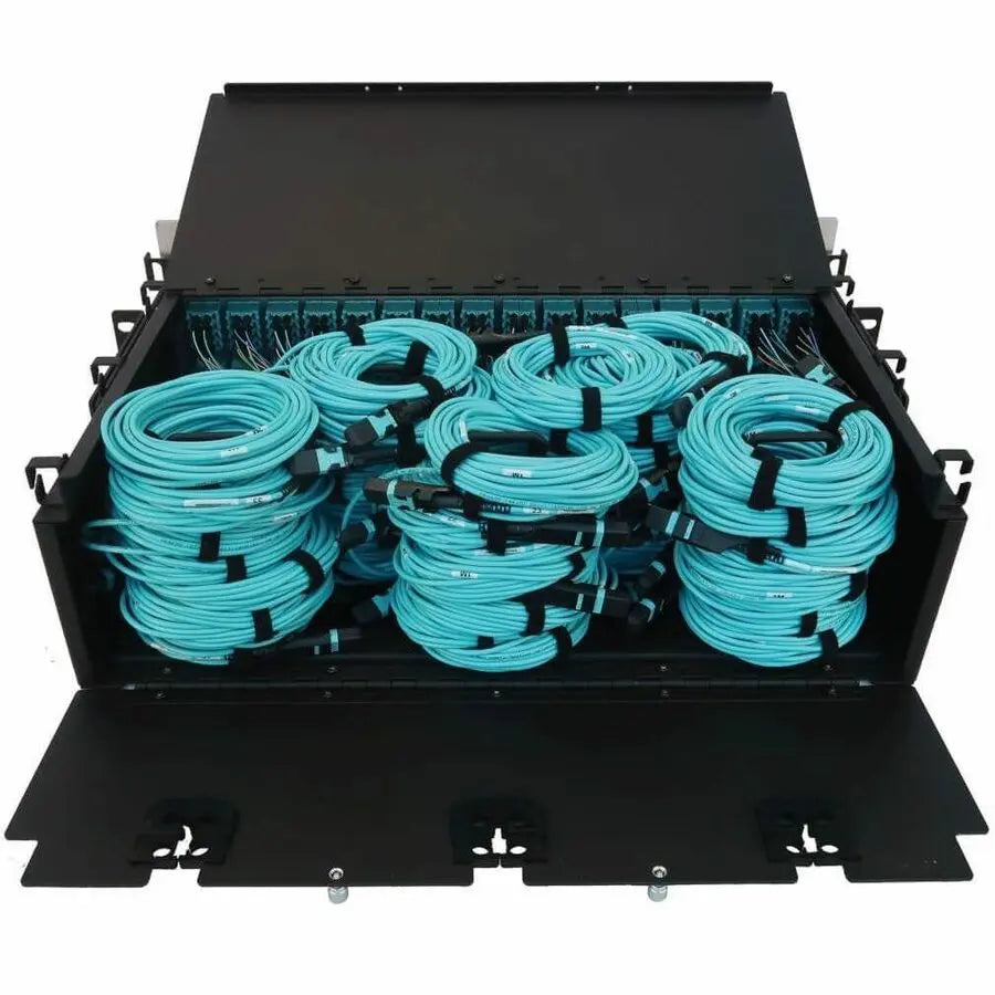 Preloaded Fiber Patch Panel, 3U – 48x (12F MTP/MPO-PC to 4x LC Duplex F/F) 8F Trunk Cables, OM4 Multimode, 5 m (16.4 ft.)