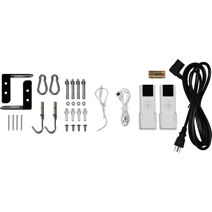 - Includes infrared (IR) and radio frequency (RF) remotes, built-in controls, 12 volt trigger cable, and mounting hardware kit.