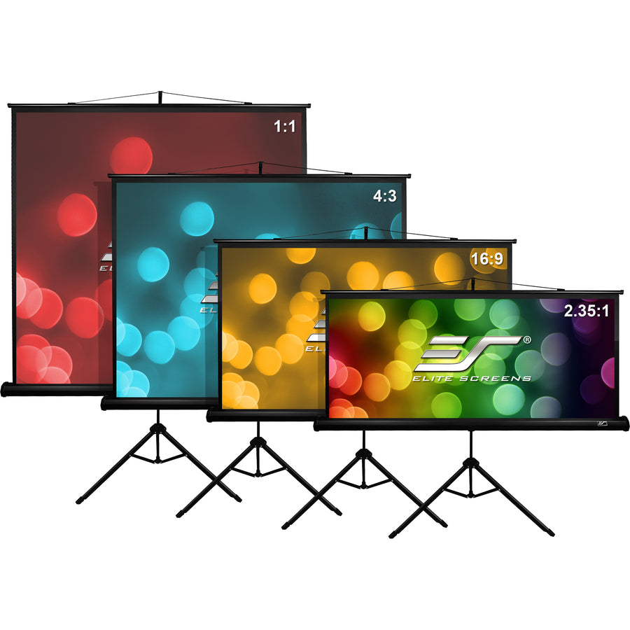 Elite Screens® Tripod B series is a tough yet lightweight portable projection screen. It is dependable in design, easy to carry for portable presentations, and manufactured with quality in mind. Tripod B features Elite Screens® 1.0 gain, MaxWhite® B front projection material with wide 180° viewing angle and fully black backed and side bordered to enhance picture quality and contrast. This series arrives with an adjustable telescopic support that allows variable height settings to aid in formatting the screen into a variety of aspect ratios and also includes a key stone eliminator to help with projection angle issues common with portable projection screens. Since 2004, Elite Screens® has become a global leader in projection screen manufacturing through its headquarters in the US and branch offices in Europe, Japan, Australia, India, Taiwan, and China. With a focus on superior product and service, Elite Screens® is dedicated to making projection screens for any projection environment. Ask about Elite’s 2-year warranty and 3-year ENR-G enhanced warranty.