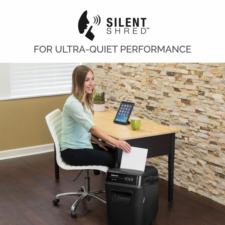 Cross-cut shredder delivers automatic shredding for personal use and maximum productivity. It shreds up to 130 sheets automatically or up to 8 sheets manually into 5/32″ x 2″ cross-cut particles (Security Level P-3). Maximum runtime is 10 minutes on with 25 minutes off. AccuFeed System provides fast automatic shredding for medium usage. Auto Reverse stops and reverses paper if a jam occurs. SilentShred offers ultra-quiet performance for shared work spaces. The energy-saving Sleep Mode feature shuts down the shredder after 2 minutes of inactivity. Recommended for one user, the 130C also offers an innovative touch screen with backlit LEDs and convenient, 8.5 gallon pullout bin.