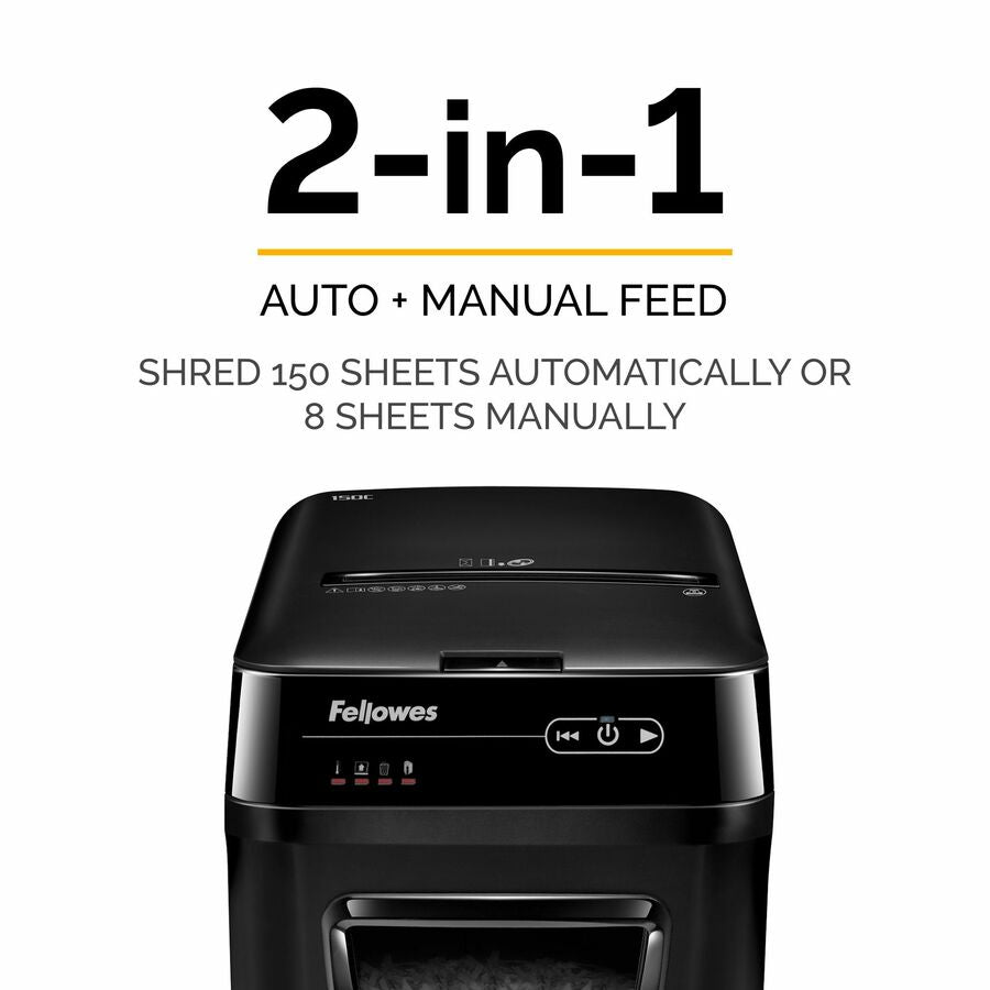 Fellowes AutoMax™ 150C Cross-Cut 150-Sheet Commercial Paper Shredder with Auto Feed