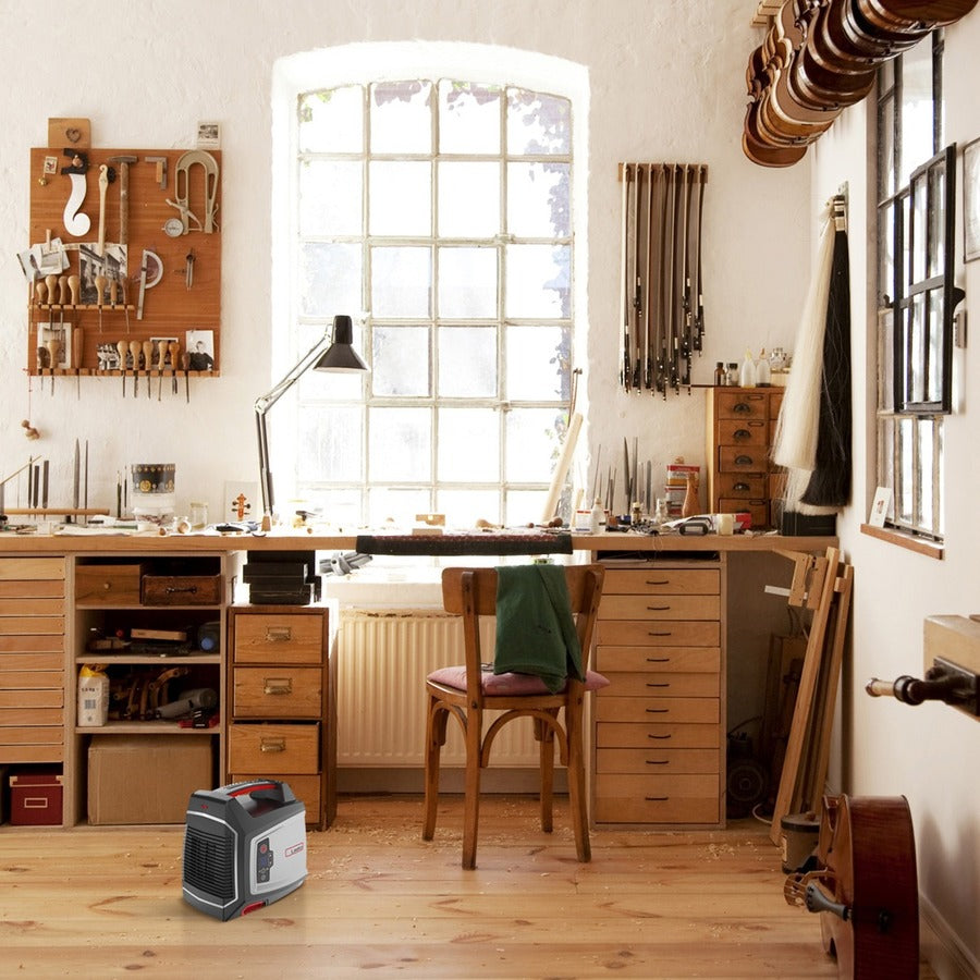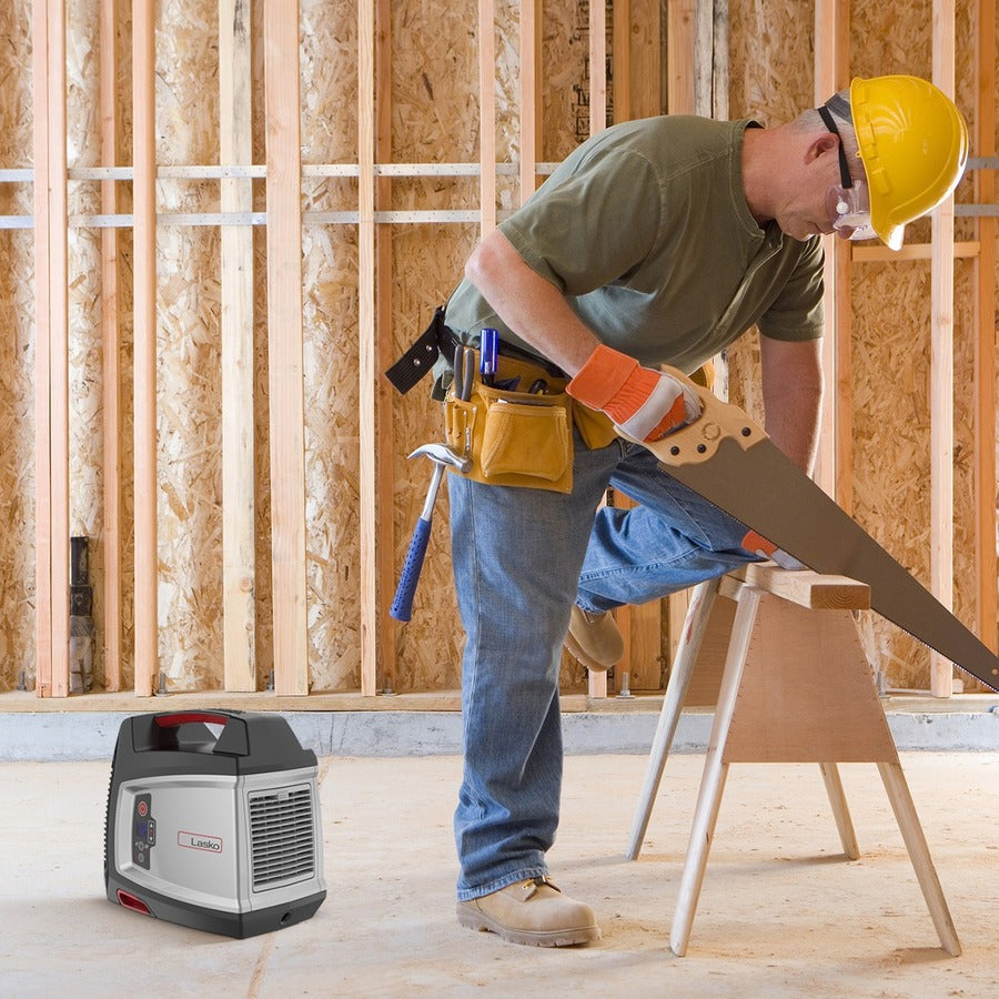 Rugged construction, high velocity heat delivery, and safe ceramic warmth are hallmarks of the Elite Collection Ceramic Utility Heater from Lasko. The unique pivoting legs allow you to direct this space heater’s 1,500 watts of warmth upwards toward standing work spaces. It has an adjustable digital thermostat control, which works on both the high and low heat settings. Great for use in garages, shops, and basements, it’s made to be taken wherever you need some extra warmth with its easy-grip handle. The filter compartment is simple to access and makes regular maintenance a breeze, which maximizes the portable heater’s efficiency. An 8-hour timer adds convenience-simply set it for your desired run time, then the heater will automatically shut off for comfort and peace of mind. Built-in safety features include overheat protection, cool-touch exterior housing, and tip-over safety switch. Comes fully assembled. 3-year limited warranty.