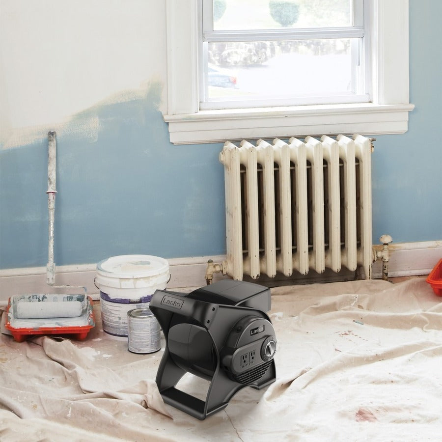 Lasko Pivoting Pro Blower Fan is a unique, multi-purpose, pivoting utility fan that is ideal for use in tight spaces where fresh air is essential, such as work spaces, attics, basements and garages. Packed with features to help at the worksite, it is equipped with a patented pivoting action allows you to direct the airflow right where you need it-from drying wet floors to exhausting the air from a newly-painted ceiling and anywhere in-between. Three high velocity speeds and a focused airstream bring powerful performance. Includes 2 additional outlets, a circuit breaker with reset, and a grounded plug for safety and convenience. Comes fully assembled. ETL listed.