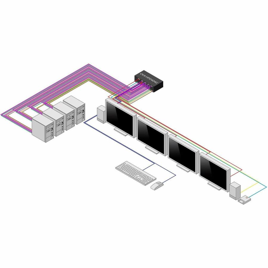 Securely control four HDMI, DP, and DVI desktops or servers from one mouse / keyboard and four monitors Status LEDs for user console ports / CAC port / port selection NIAP 4.0 Certified prevents data leaks / isolates systems / has no internal memory or storage Dedicated and Configurable Common Access Card Port enabling secure smart card login Anti-Tamper switches detect physical intrusion attempts which disable all functionality and trigger visual and audible alerts Built in the USA