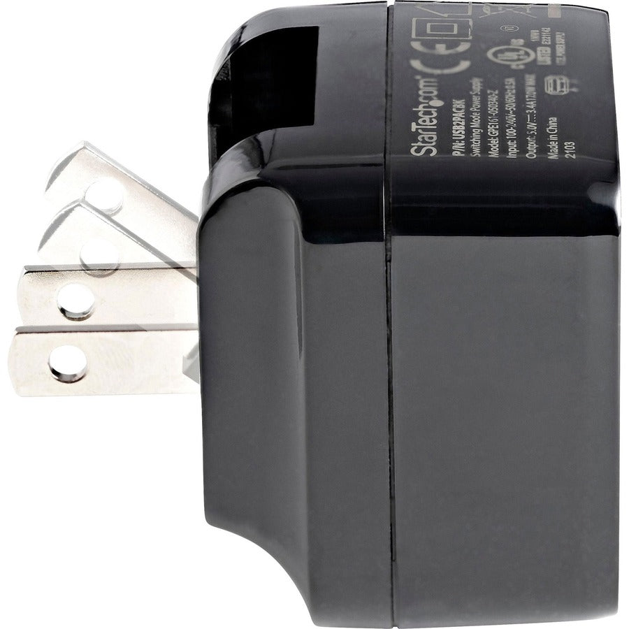 StarTech.com 2 Port USB Wall Charger, 17W Wall Charger Hub (2.4A & 1A port), Dual USB-A Power Adapter, Portable Charger for Phones/Tablets