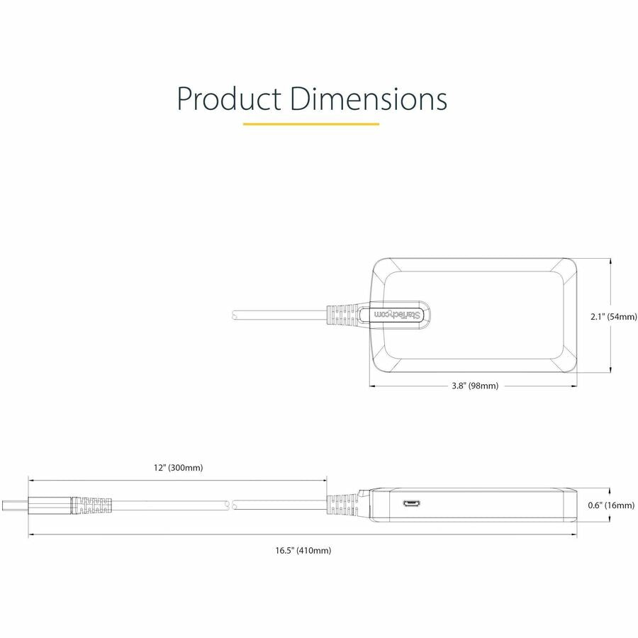 - AUXILIARY POWER INPUT: The USB hub features a Micro USB power input (cable sold separately) to add 4.5W (5V/0.9A) of power to the hub for applications where additional power may be required, such as connecting high power USB devices like SSDs/HDDs