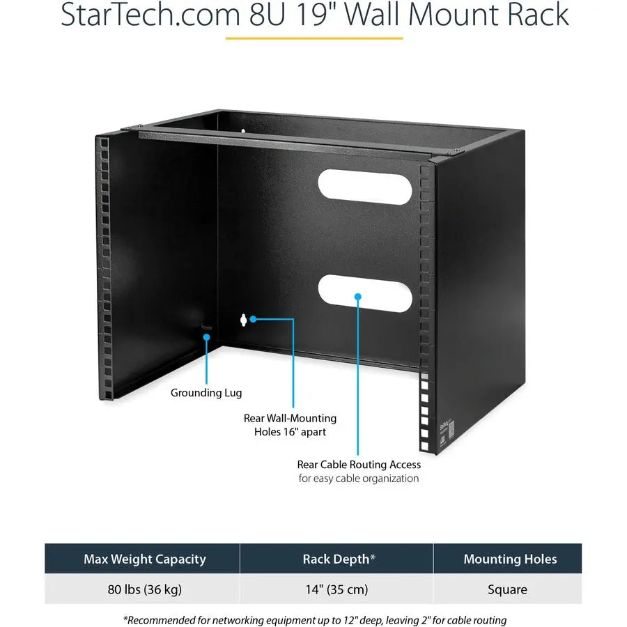 StarTech.com 8U Wall Mount Rack, 14in Deep, 19 inch Wall Mount Network Rack, Wall Mounting Patch Panel Bracket for Switch/IT Equipment