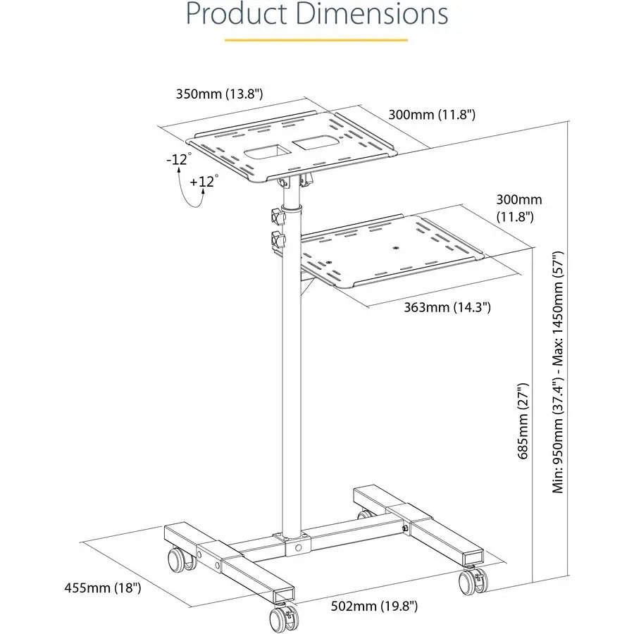 - MOBILE PROJECTOR AND LAPTOP STAND: This heavy-duty mobile cart provides 2 shelves (at different heights) that each support 22lb (10kg); Durable rolling projector cart has a strong/sturdy base (17.9″ x 19.7″/45.5cm x 50.2cm) with lockable casters/wheels
