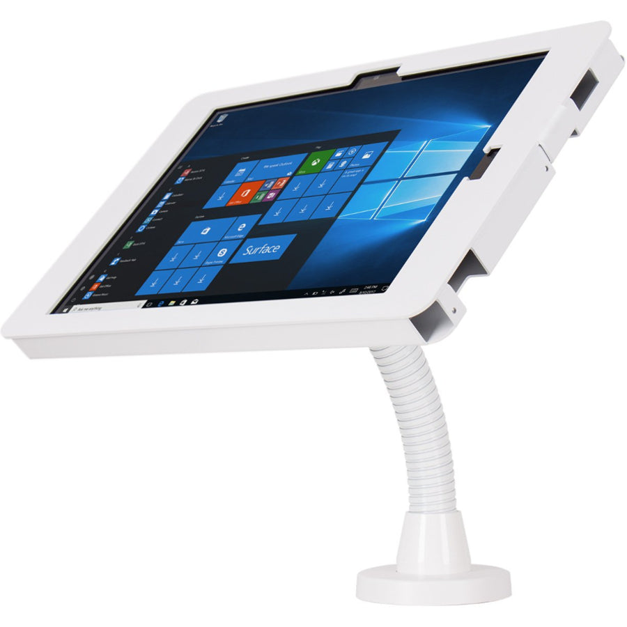 Elevate II Flexible Wall | Countertop Mount Kiosk is a sleek, full-featured solution for turning an Surface Pro into an interactive display on a flat surface. Now with a flexible arm, you can easily position the tablet in any direction you wish. The kiosk can be installed onto a countertop or wall. This stable fixed mounting option allows the flexible arm to be positioned with ease. This solution is ideal for showroom floors, tradeshows, storefronts or any other setting that requires the tablet angle to be adjusted often.