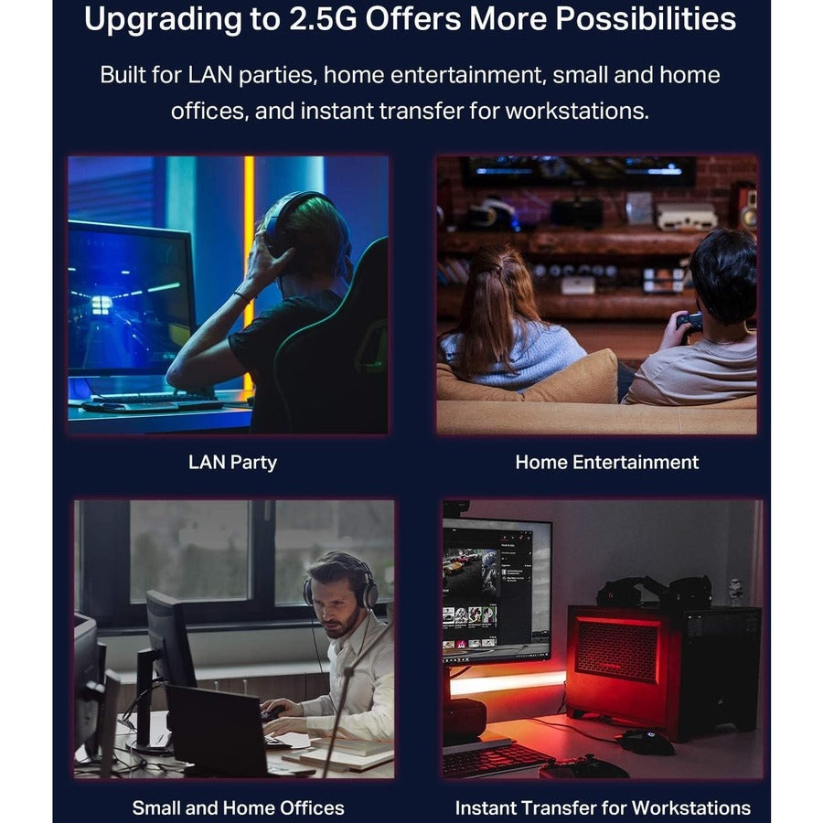 Flawlessly integrated into existing gigabit Ethernet network infrastructures, 2.5 faster speeds with regular Cat5e Ethernet cables, without the need to upgrade to Cat6 wiring, reducing wiring costs and hassle.