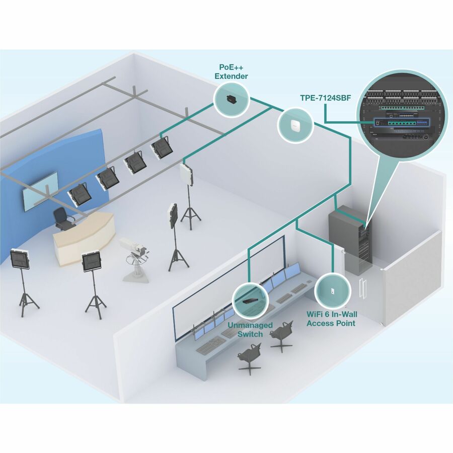 TRENDnet’s 12-Port 10G PoE++ Web Smart Switch (720W), model TPE-7124SBF, offers advanced traffic management controls to meet the evolving demands of SMB networks. This 10G managed PoE++ switch comes with an intuitive web-based interface.Management features include LACP to increase bandwidth between switches, VLANs for segmenting and isolating virtual LAN groups, QoS for traffic prioritization, port bandwidth controls, and SNMP monitoring, making this a powerful solution for any SMB network. Improve voice performance by isolating and prioritizing VoIP traffic from normal data traffic with an easy-to-use voice VLAN feature.Free up router resources by offloading routing processes to this 10G managed PoE++ switch by using the L2+ IPv4/IPv6 static routing feature to efficiently route traffic at the switch level. The dynamic ARP inspection feature helps protect connected devices from man-in-the-middle attacks. Take advantage of the available multicast and IGMP/MLD snooping features to optimize IPsurveillance system performance, and minimize network traffic.This 12-Port 10G managed PoE++ switch also features eight 10GBASE-T PoE++ ports, and four 10G fiber SFP+ ports for longdistance, high-speed network connections, providing a cost-effective solution in adding 10G link capability to an SMB network.Installers and integrators can save on equipment costs and reduce installation time with TRENDnet’s 10G PoE++ switch by delivering up to 90W per port of PoE power and data over existing Ethernet cables. Easily network PoE devices with a 720W PoE budget to devices, such as high-power wireless access points, LED lighting, digital signage, IPTV decoders, access controls, cameras, and more with this high-power 10G managed PoE++ switch.