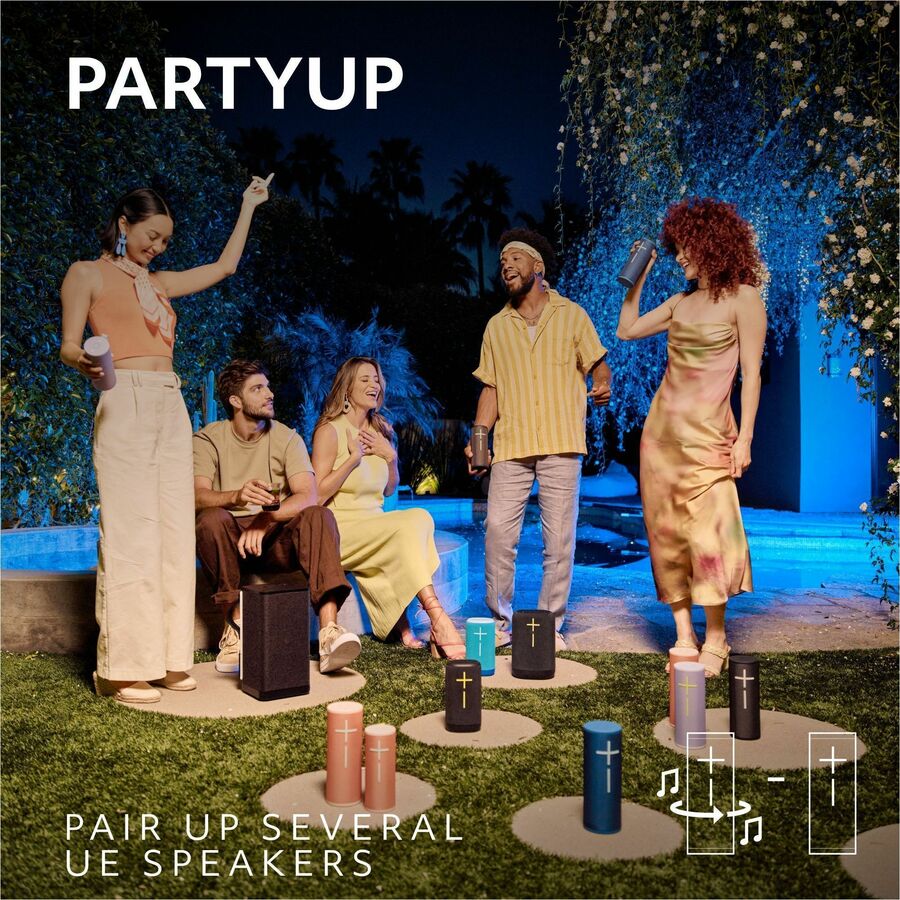 Use PartyUp on the UE | BOOM App to pair 1, 2 , 3… and over 150 speakers and create the ultimate sound experience. You can combine multiple BOOM 4, MEGABOOM 4, EVERBOOM, EPICBOOM and HYPERBOOM speakers or even pair them with previous generation BOOM speakers. Build a wall of sound? No problem.