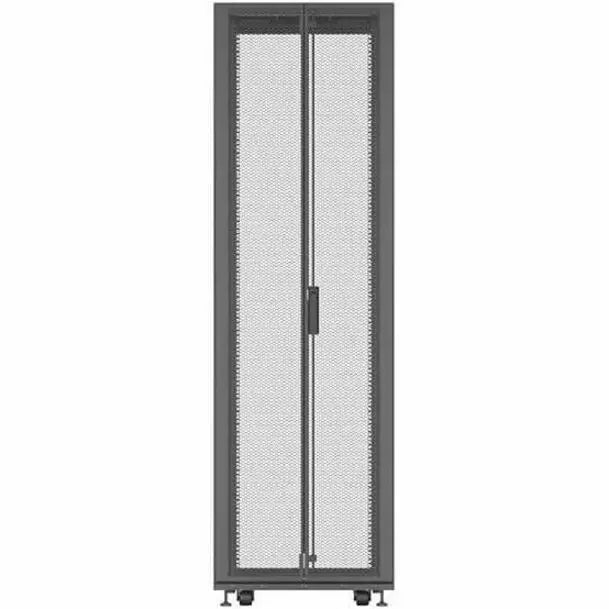 The Vertiv™ VR Rack VR3100 is a 42U server rack built with reliable engineering and is designed for simple and easy configuration. It has dimensions of 2000mm x 600mm x 1100mm (height, width, and depth), and has a deep frame that provides users around 2.5 inches more useable depth than similar sized racks. It has load capacities of 3,000 pounds static and 2,500 pounds dynamic. It is delivered ready for high density environments and supports a wide variety of rack-based equipment.