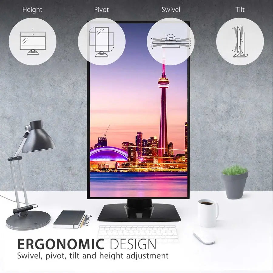 - ERGONOMIC STAND: Advanced ergonomics (tilt, swivel, pivot and height) for all-day comfort